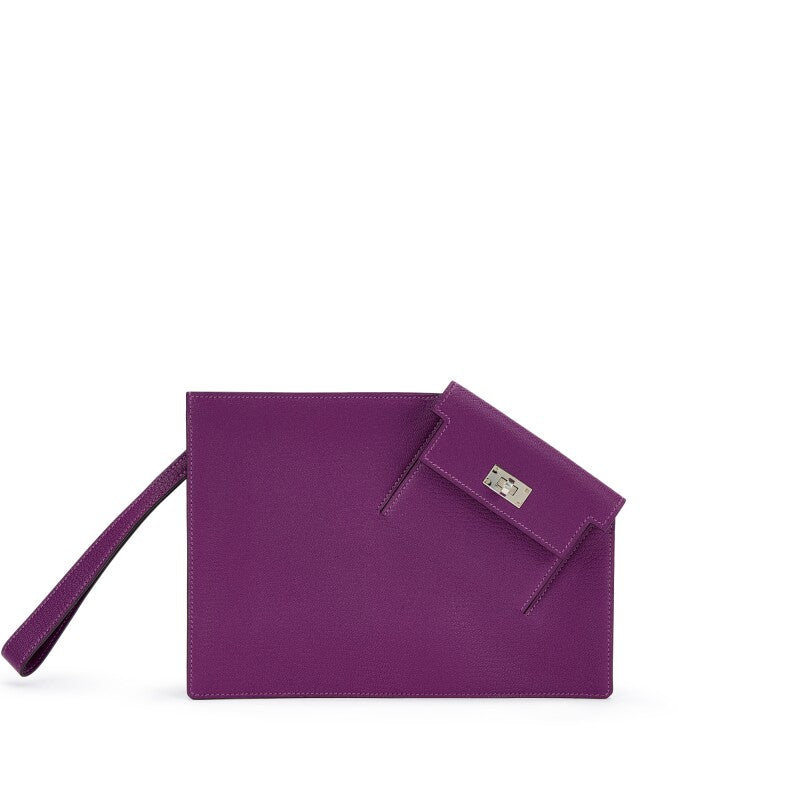 2019Description Hermes Anemone Chevre Mysore Kelly Pocket To Go Pouch Palladium Hardware, 2019 The interior...