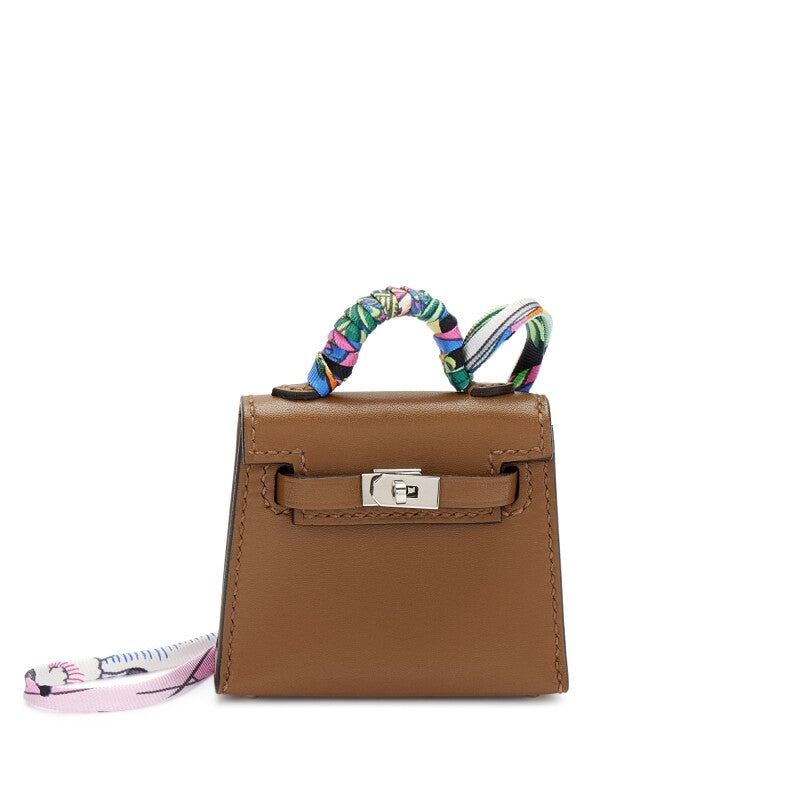 2022Description Hermes Alezan Tadelakt Micro Mini Kelly Twilly Charm Palladium Hardware, 2022 The interior is...