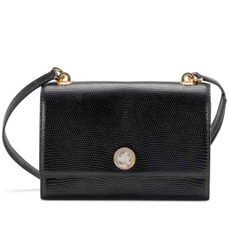 2021Description Hermes Black Salvator Lizard Minuit au Faubourg Gold Mechanical Hardware, 2021 Features a patented...