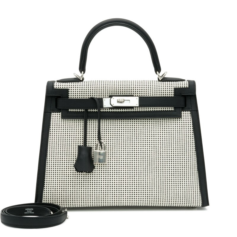 2023Description Hermes Black Swift and Ecru Toile Quadrille Birkin 25 Palladium Hardware, 2023 This is...