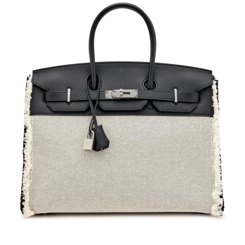 2021Description Hermes Black Swift and Toile H Fray Fray Birkin 35 Palladium Hardware, 2021 The...