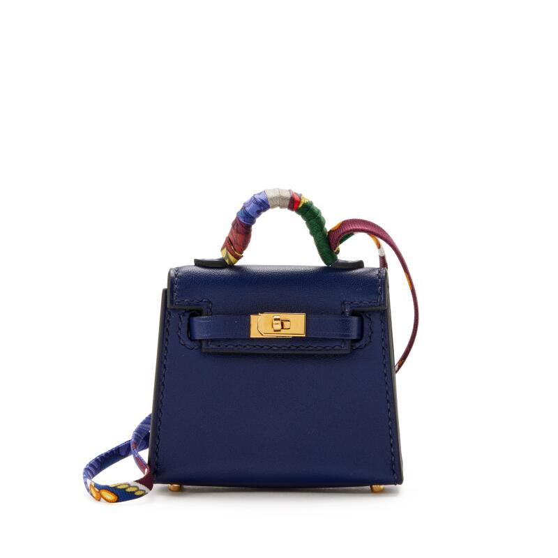 2022Description Hermes Blue Encre Tadelakt Micro Mini Twilly Kelly Bag Charm Gold Hardware, 2022 The...