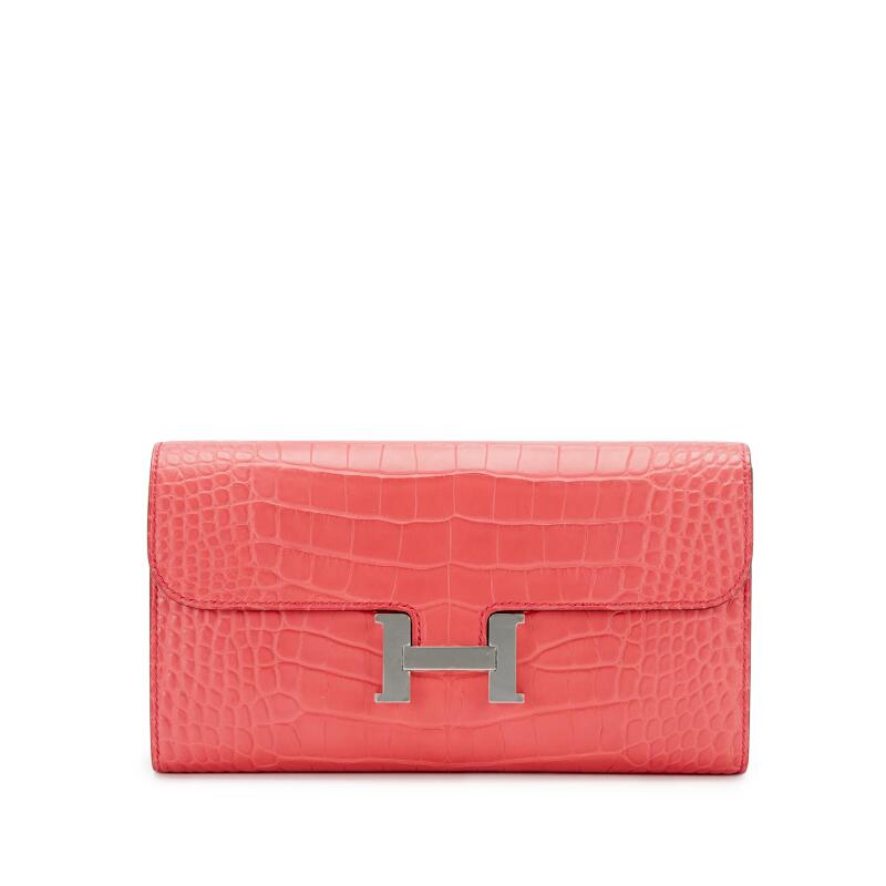 2019Description Hermes Bougainvillea Matte Alligator Constance Long Wallet Palladium Hardware, 2019 The interior is lined...