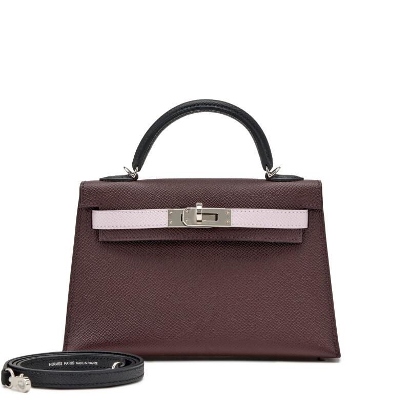 2022Description Hermes Rouge Sellier, Pale Mauve and Caban Tri-Color Epsom Mini Kelly 20 II Palladium...