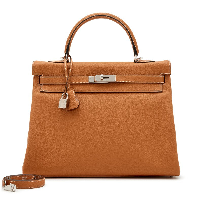 2023Description Hermes Toffee Pigskin Kelly Charm, 2023 Includes care booklet, dust bag, and box This...