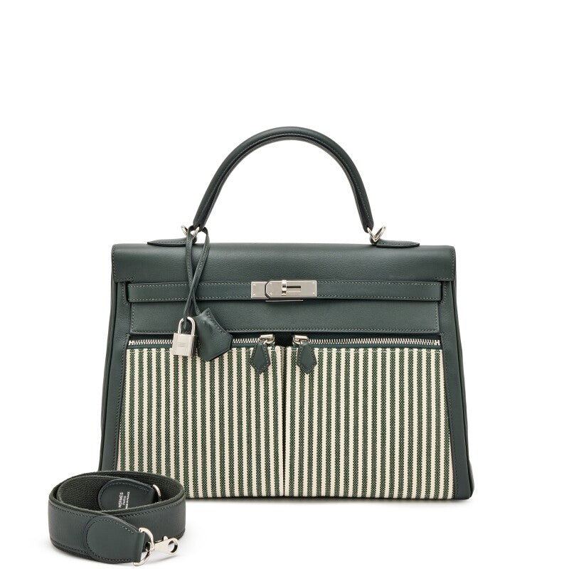 2016Description Hermes Vert Anglais Swift and Toile Riga Kelly Lakis 35 Palladium Hardware, 2016 Limited...