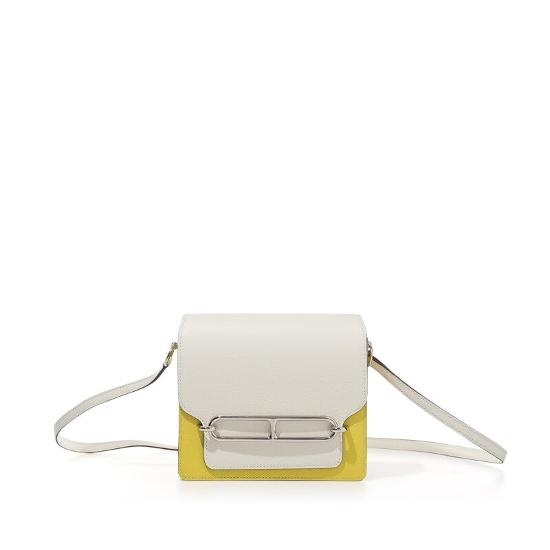 2022Description Hermes White and Lime Evercolor Mini Roulis 18 Palladium Hardware, 2022 The interior is...