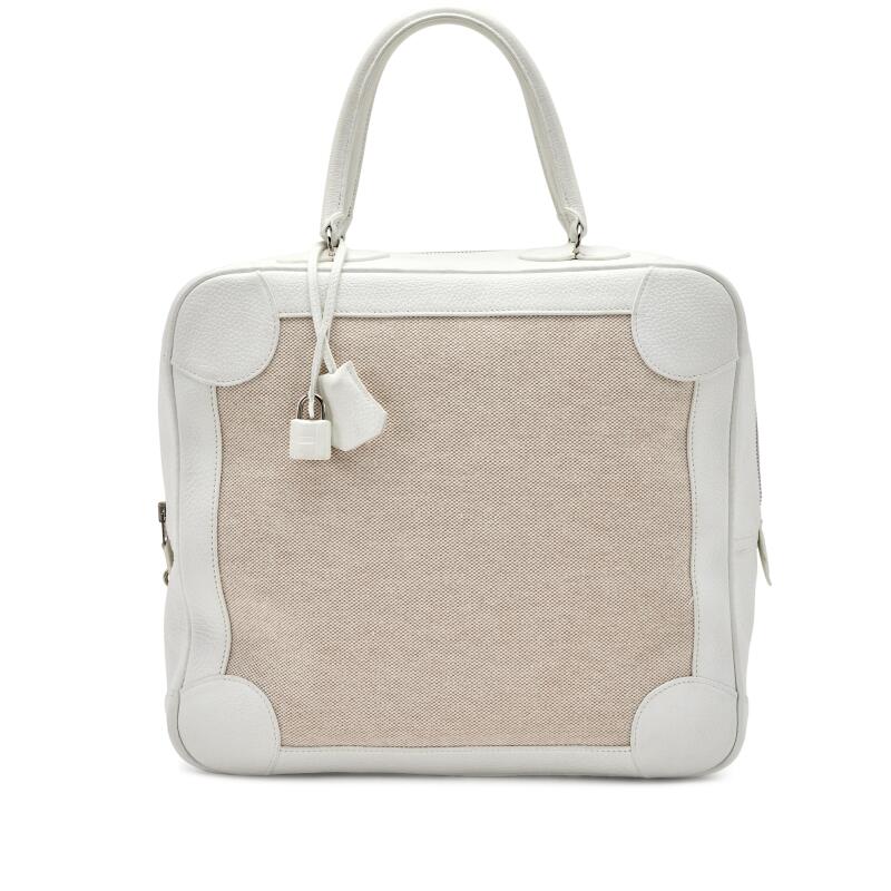 2004Description Hermes White Clemence and Toile Omnibus PM Palladium Hardware, 2004 The interior is lined...