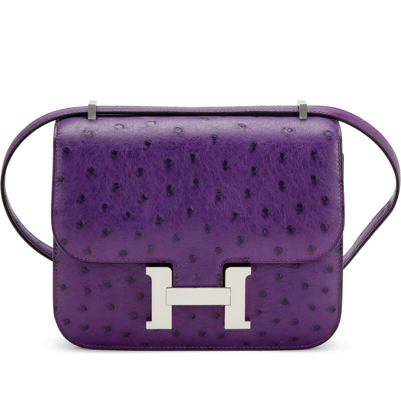 2023Description Hermes Violine Ostrich Constance 18 Palladium Hardware, 2023 The interior is lined in a tonal agneau...