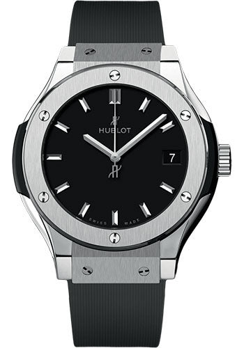 33 mm satin-finished and polished titanium case, satin-finished and polished titanium bezel with 6 h-shaped...