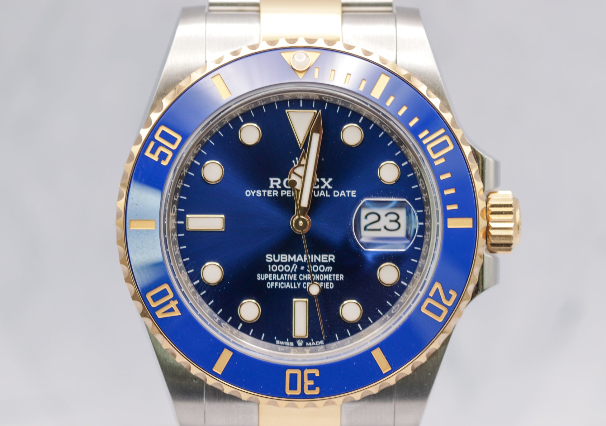 A modern classic reimagined in steel and gold. This brand-new 2025 Rolex Submariner Date ref. 126613LB, affectionately known as the “Bluesy,” pairs a striking royal blue dial and bezel with a rugged Oystersteel and 18k yellow gold case and bracelet. It’s the perfect blend of sporty performance and unmistakable luxury.