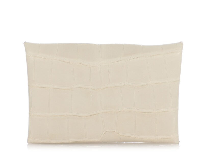 Hermes Beton Matte Alligator Calvi Card Holder Palladium Hardware, 2022