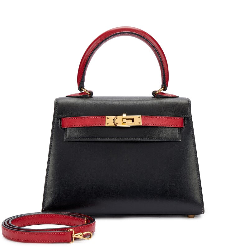 Black and Rouge Vif Box Mini Kelly 20 I Gold Hardware, 1993