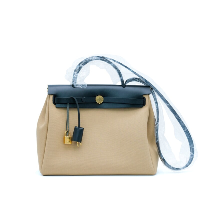 Hermes Black Vache Hunter and Trench Toile Herbag Zip 31 Gold Hardware, 2023
