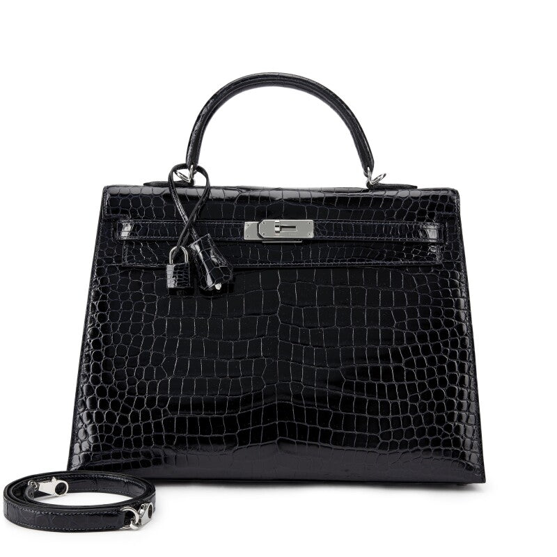 Bleu Marine Shiny Porosus Crocodile Kelly 35 Sellier Palladium Hardware, 2013