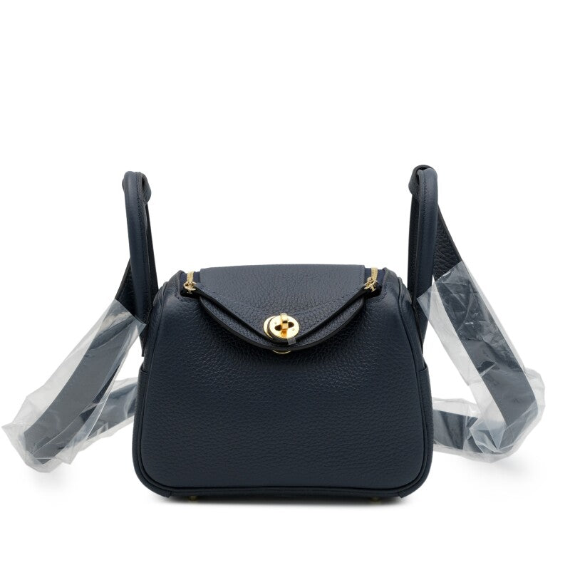 Hermes Bleu Nuit Clemence Mini Lindy 20 Gold Hardware, 2023