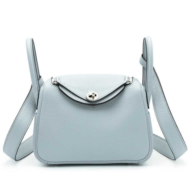 Hermes Bleu Pale Clemence Mini Lindy 20 Palladium Hardware, 2023