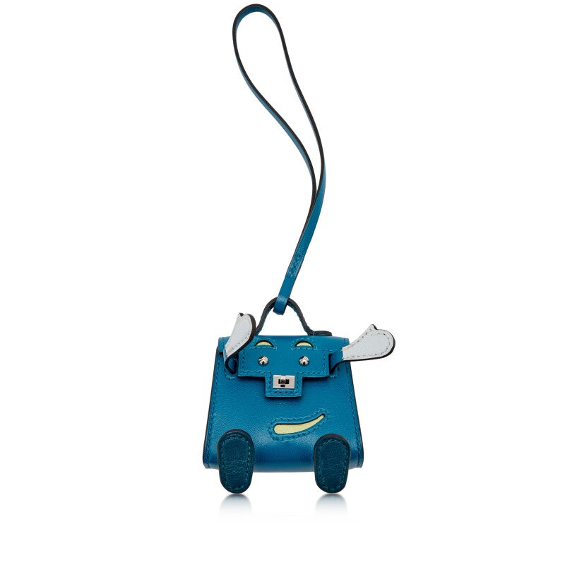 Hermes Blue Izmir, Jaune Bourgeon, Blue Brume, Vert Bosphore Tadelakt Blue Kelly Doll Charm, 2023