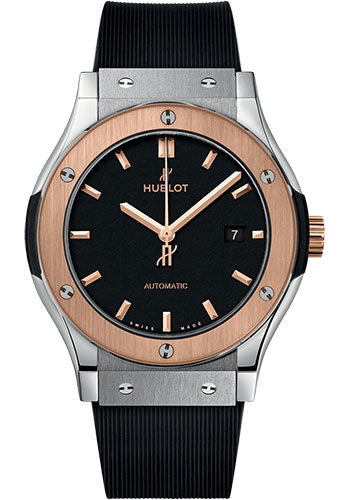 Hublot Classic Fusion Titanium King Gold Watch - 42 mm - Black Dial - Black Lined Rubber Strap - 542.NO.1181.RX