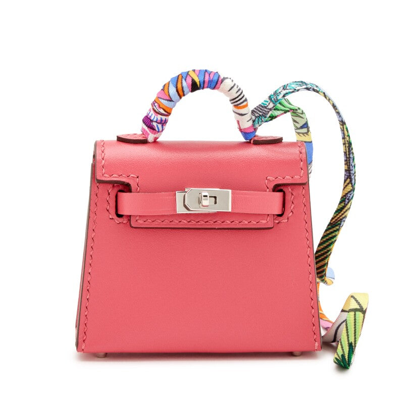 Hermes Rose Lipstick Tadelakt Micro Mini Twilly Kelly Bag Charm Palladium Hardware, 2019
