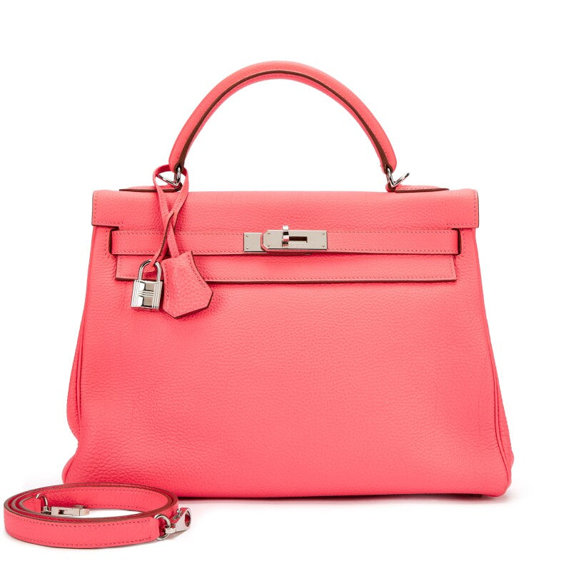 Hermes Rose Lipstick Togo Kelly 32 Retourne Palladium Hardware, 2012