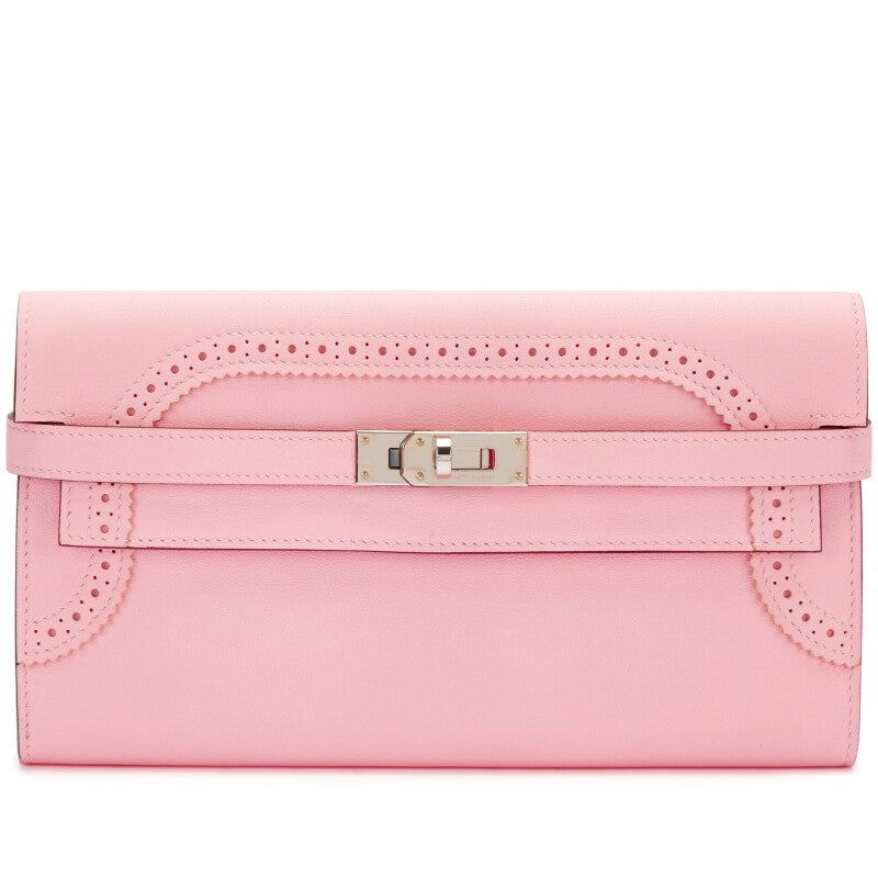 Hermes Rose Sakura Swift Ghillies Kelly Wallet Palladium Hardware, 2015