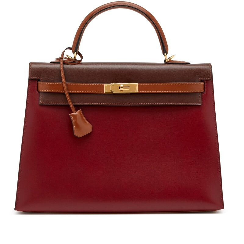 Rouge H, Marron Fonce, and Noisette Box Calf Kelly 35 Bag Gold Hardware, 2002