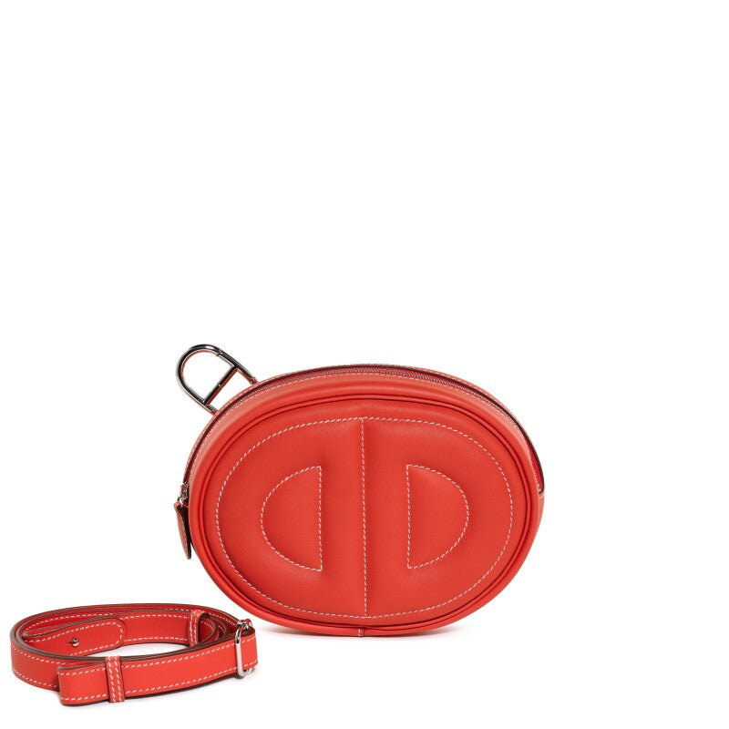 Hermes Rouge Pivoine and Capucine Swift In-The-Loop Belt Bag Palladium Hardware, 2021