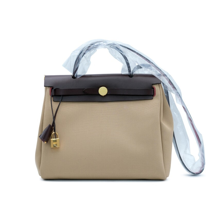 Hermes Rouge Sellier Vache Hunter and Trench and Bleu Tempete Toile Herbag Zip 31 Gold Hardware, 2023
