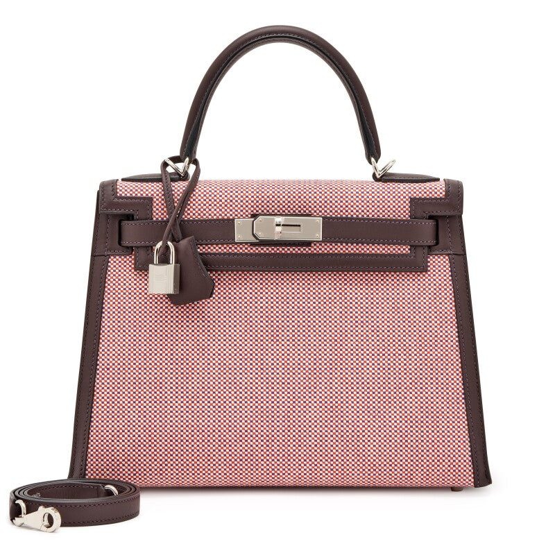 Rouge Swift and Ecru Toile Quadrille Kelly 28 Sellier Palladium Hardware, 2023