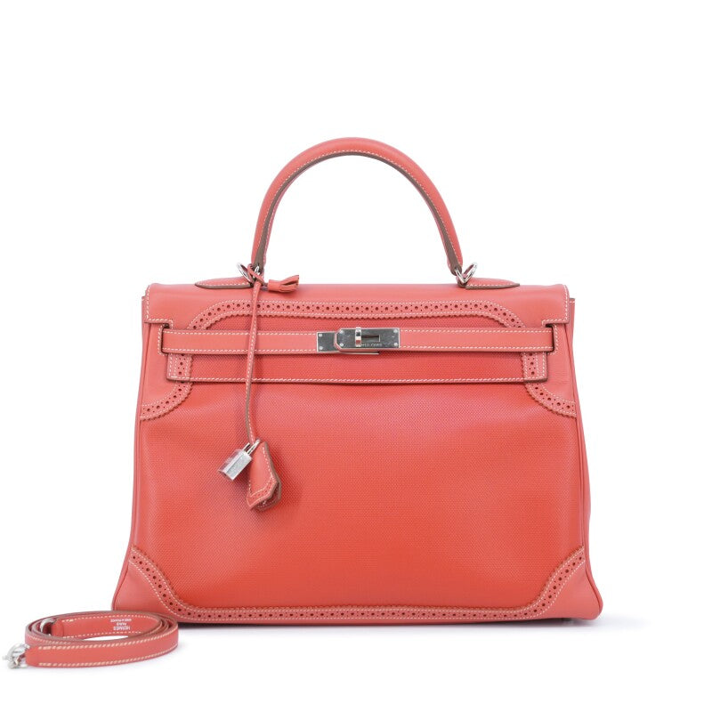 Hermes Sanguine Swift and D'h Toile Ghillies Kelly 35 Retourne Palladium Hardware, 2007
