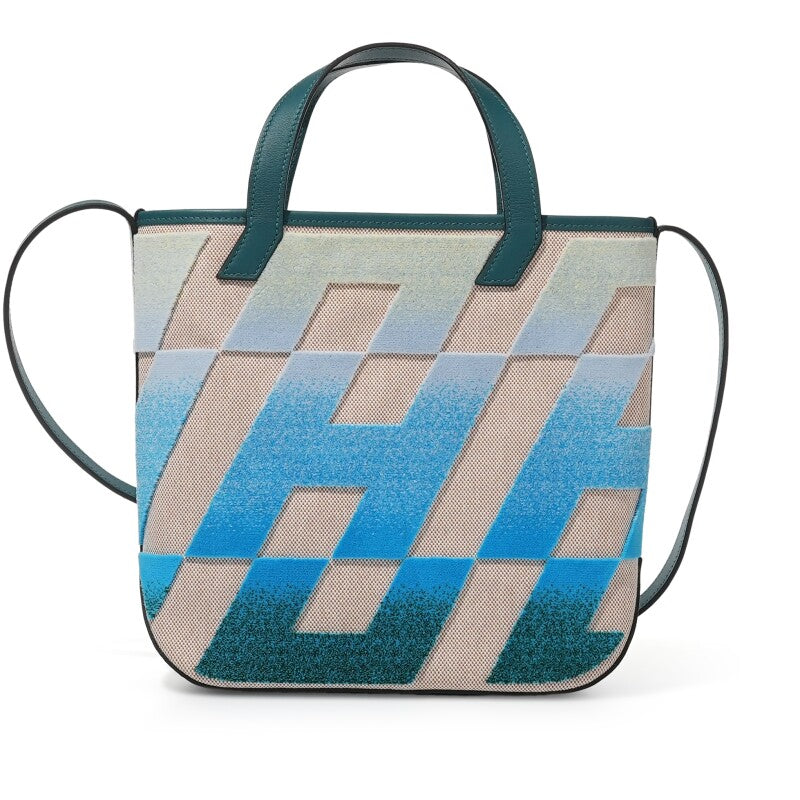 Hermes Vert Bosphore, Bleu and Jaune Pale Swift, Tufted Motif and Ecru H Canvas Cabas H en Biais 27 Bag, 2021