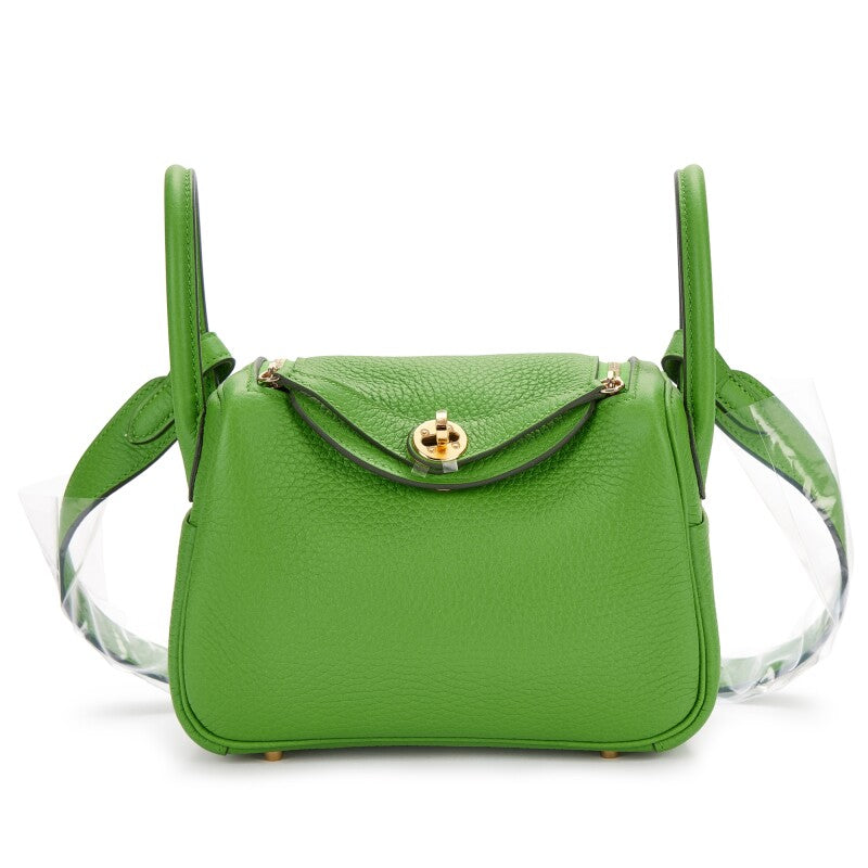 Hermes Vert Yucca Clemence Mini Lindy 20 Gold Hardware, 2023